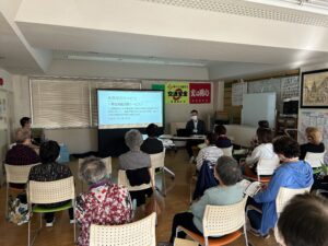 10月28日に東深堀町会にある在宅福祉委員会と地域包括支援センターゆのかわが協働して地域住民の方々に「養護老人ホームについて」「永楽荘について」の出前講座を行いました。