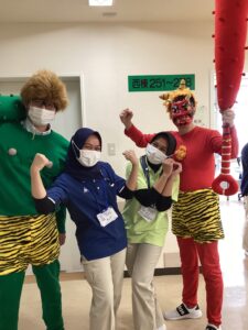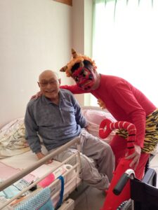 ご利用者の皆様には、楽しい話題を少しでも提供出来ればと思い、職員が鬼に扮装し、ご利用者様に豆をまいて頂き、魔を滅(笑)することが出来るように楽しい時間を過ごしました!