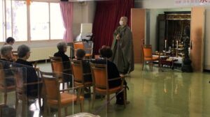 3月11日(月)高龍寺のご協力の元、彼岸法要を執り行いました。例年よりご利用者の出席人数が多く、「これからも感染症が発生せず、健康に過ごせるようお祈りをした」等の声が聞かれておりました。永井住職をはじめ、高龍寺の皆様、ご協力ありがとうございました。